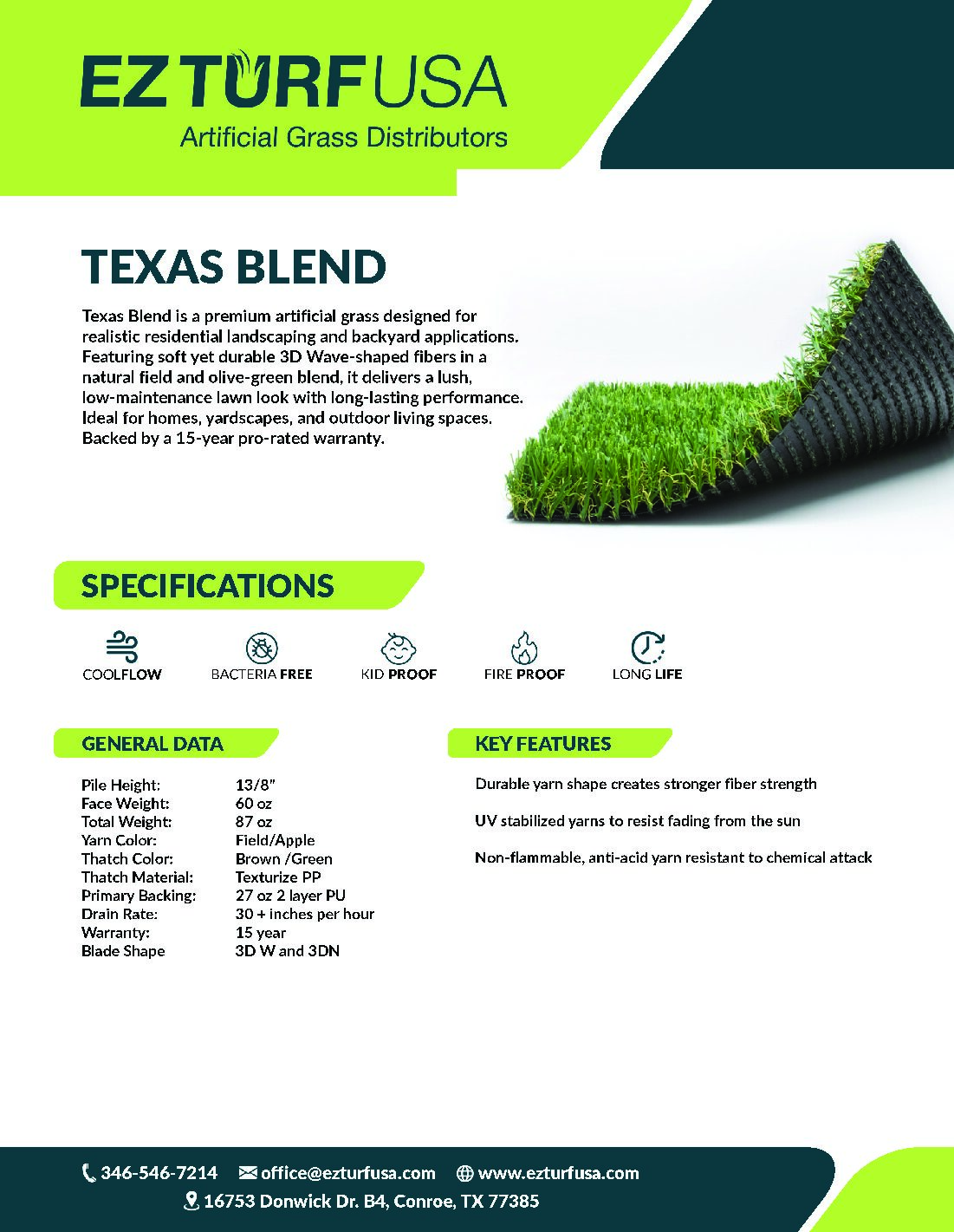 Texas Blend is a premium artificial grass designed for realistic residential landscaping and backyard applications.